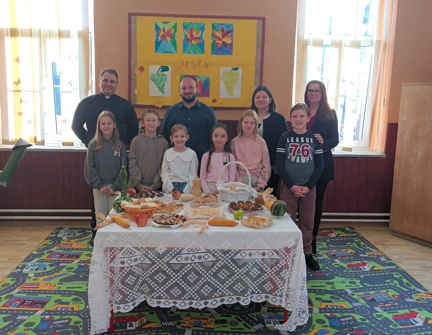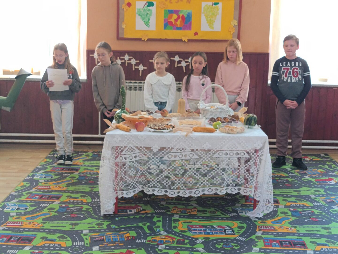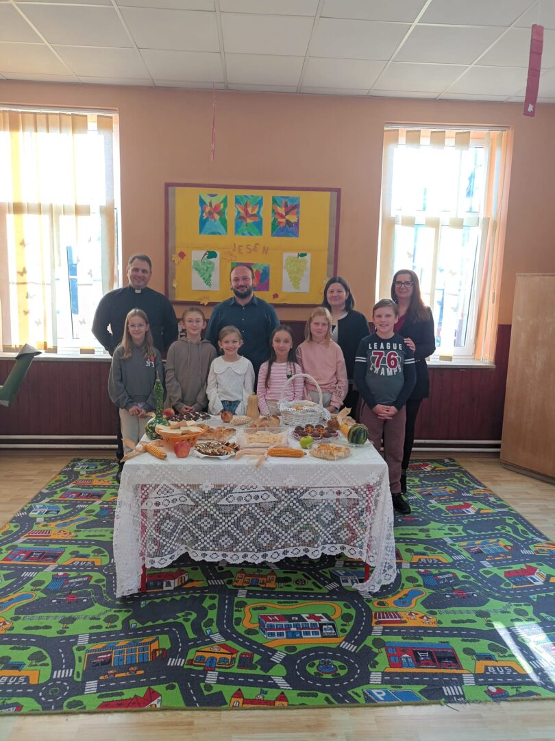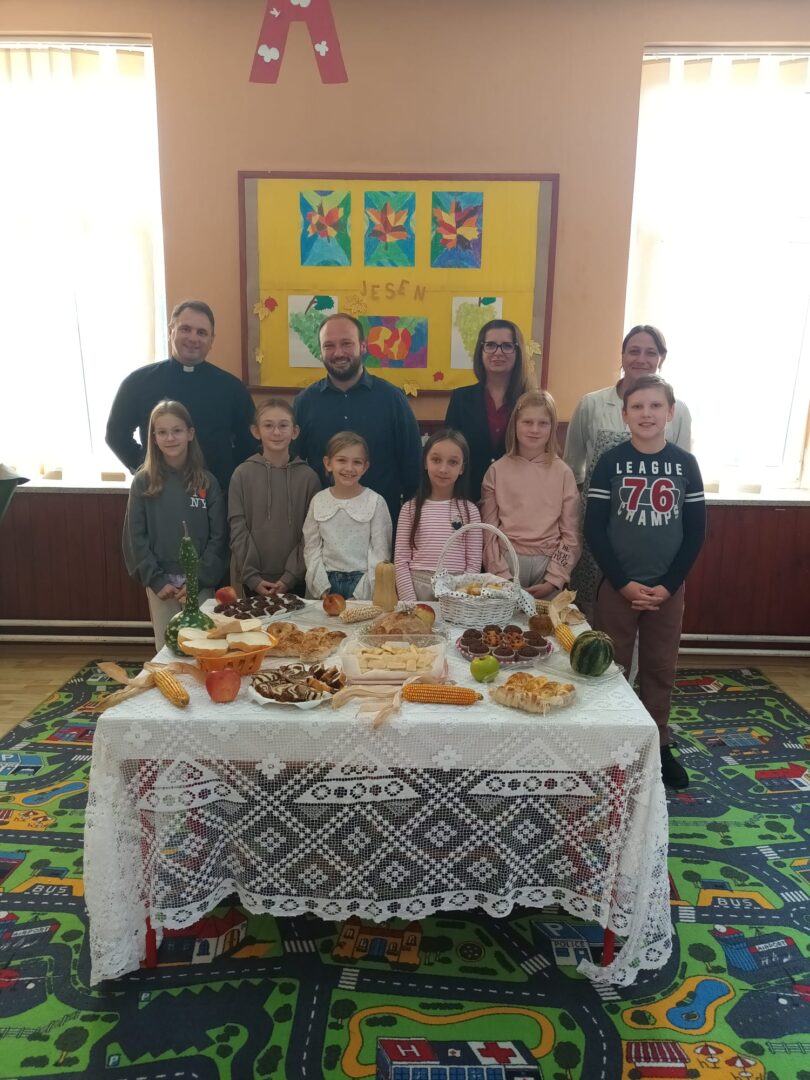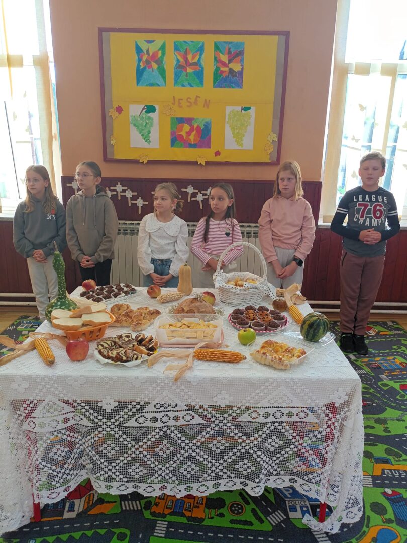 Radost je odzvanjala školom te su učenici jedva dočekali pokazati što su pripremili u prigodnom programu kako bi obilježili Dan kruha i zahvalnosti za plodove zemlje. Započeli su pjesmom Ljubav Božja je velika, a zatim su pozdravili svog župnika Tomicu Božičeka, učiteljice i učitelja te tetu kuharicu. Uslijedila je recitacija i scenska igra o kruhu i njegovom nastanku. Istaknuli su kako put do kruha nije lak već se za njega treba itekako potruditi i marljivo raditi. Ipak, na kraju se sav trud isplati. Napomenuli su kako uistinu imaju sve što požele te im ništa ne nedostaje. Stoga su zahvalni svojim bližnjima i dragom Bogu što su pokazali recitacijom i pjesmom. Župnik im je na kraju uputio pohvalne i poticajne misli te blagoslovio mirisne i ukusne proizvode vrijednih ruku. (vjeroučiteljica Ivana Lisak)