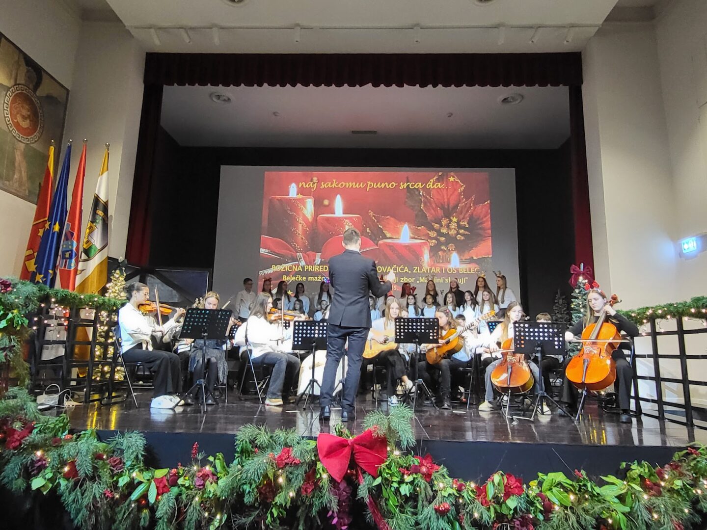 U sklopu Zlatarske božićnice jučer je u zlatarskoj Sokolani održana Dječja božićna priredba na kojoj su sudjelovali naša škola, Osnovna škola Belec, Dječji crkveni zbor „Marijini slavuji“ i Belečke mažoretkinje. Priredbu je dvjema pjesmama otvorio Dječji crkveni zbor „Marijini slavuji“ pod ravnanjem Jasminke Krušelj. Izvedbe naših učenika otvorile su Ana Popov iz 8.a te Elena Šrajbek iz 8.b razreda, koje su na violini i violončelu izvele skladbu poznatog Plesa šećerne vile iz baleta Orašar. Učenici dramske skupine iz 2.a razreda izveli su igrokaz Priča o prvom Božiću. Učenice iz 4.a razreda Mia Rozijan i Vida Bezak odrecitirale su pjesme Došel je Božić i Pahulice. Učenici Dramske skupine izveli su kratki, poučni igrokaz Božić bez ekrana. Školski zbor je pod vodstvom i u pratnji učitelja Matije Vučkovića te školskog orkestra izveo pjesme O, Christmas Tree, Božić nam stiže i Fritula. Priredbu su dramsko-recitatorskim i plesnim točkama upotpunili učenici razredne nastave OŠ Belec i Belečke mažoretkinje. Bogata i svečana priredba završila je zajedničkom izvedbom svih izvođača u pjevanju pjesme Radujte se, narodi. (Zvonimir Guć)